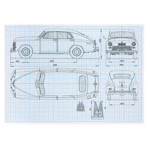 Бумага масштабно-координатная (миллиметровая), планшет, А4, голубая, 20 листов, ПЛОТНАЯ 80 г/м2, STAFF, 113490
