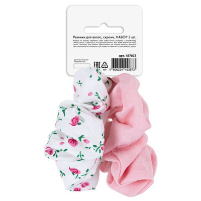 Резинки для волос НАБОР 2 шт., 4х20 см, скранч, розовый, белый, MONTE VITA (МОНТЕ ВИТА), 457073