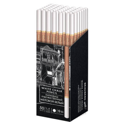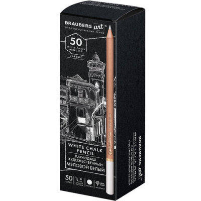 Белый меловой карандаш BRAUBERG ART "CLASSIC" обеспечивает гладкое письмо благодаря мягкому грифелю диаметром 4,0 мм.