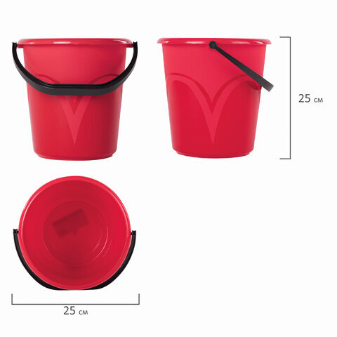Ведро 8 л, без крышки, пластиковое, пищевое, с глянцевым узором, цвет красный, мерная шкала, LAIMA, 603892