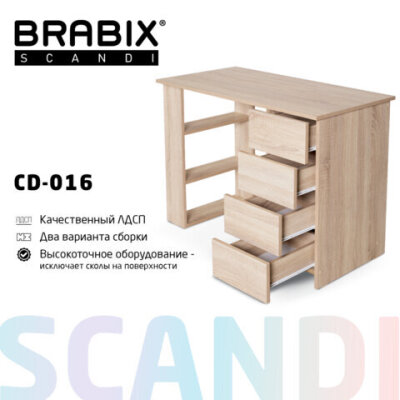 Стол письменный/компьютерный BRABIX "Scandi CD-016", 1100х500х750 мм, 4 ящика, дуб сонома, 641892, ЦБ013707-2