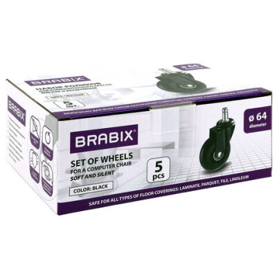 Комплект мягких бесшумных роликов BRABIX для компьютерных кресел.