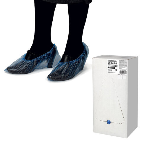 Бахилы КОМПЛЕКТ 2000 шт. (1000 пар) в упаковке, ЭКОНОМ, размер 40х14 см, 1,8 г, ПНД, ЛЮБАША, 630717