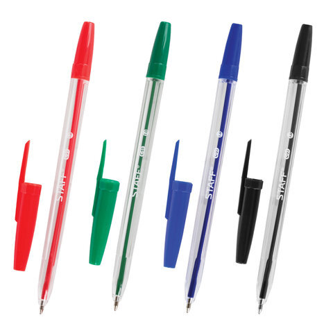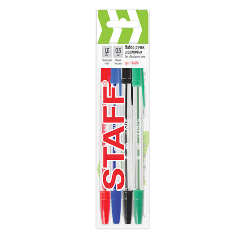 Ручки шариковые STAFF "C-51", НАБОР 4 шт., АССОРТИ, узел 1 мм, линия письма 0,5 мм, 142816