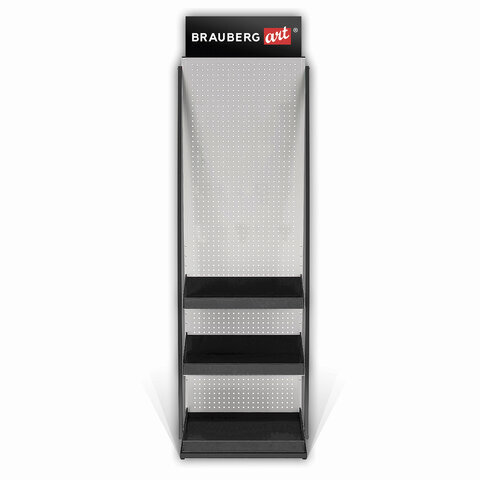Стойка для размещения товара напольная BRAUBERG ART, 2050x600x500 мм, 35 крючков, 3 полки, металл, 504875