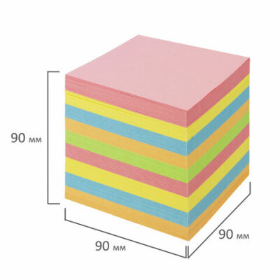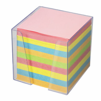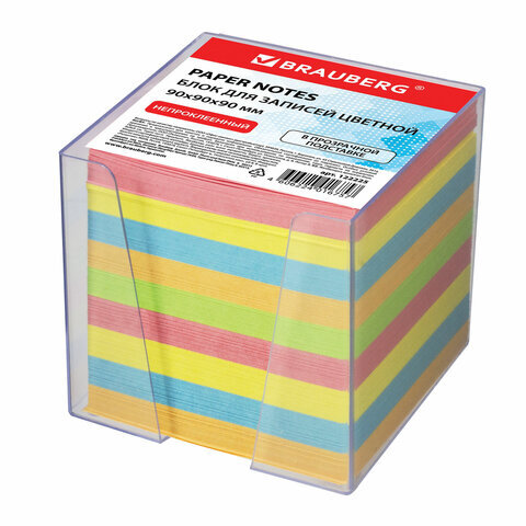 Блок для записей BRAUBERG в подставке прозрачной, куб 9х9х9 см, цветной, 122225
