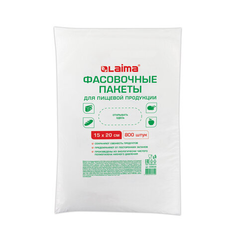 Пакеты фасовочные 15х20 см КОМПЛЕКТ 800 шт., ПНД 9 мкм, евроупаковка, LAIMA, 608529