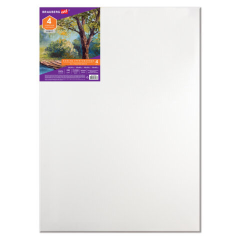 Холсты на подрамнике BRAUBERG ART DEBUT, НАБОР 4 шт., грунтованные, 100% хлопок, мелкое зерно, 191028