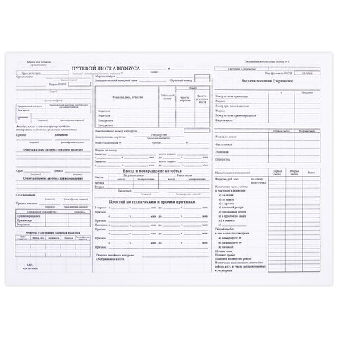 | Вид бланка | Путевой лист автобуса |