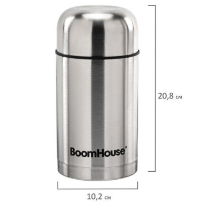 Термос BOOMHOUSE – практичное решение для сохранения температуры еды и напитков до 24 часов! Двойные стенки из нержавеющей стали SUS304 надёжно удерживают тепло, а широкое горло удобно для первых и вторых блюд. Незаменим в поездках, на работе и отдыхе.