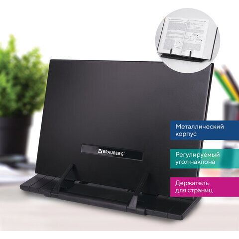 Подставка для книг и учебников BRAUBERG, регулируемый наклон, металл/пластик, черная, 237446