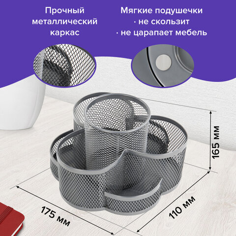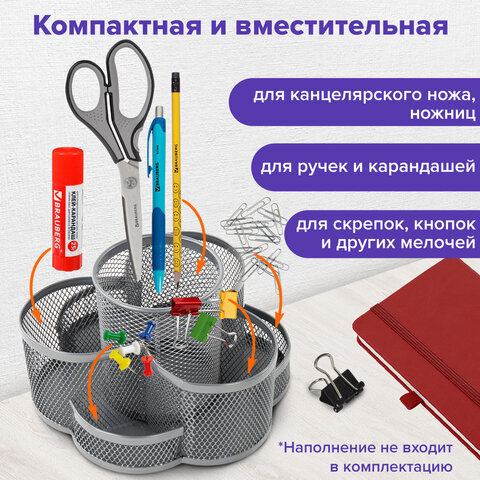 Практичная и долговечная металлическая подставка-органайзер BRAUBERG предназначена для хранения различных канцелярских и пишущих принадлежностей.