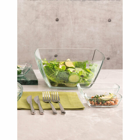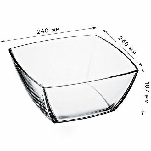 Салатник большой квадратный глубокий, 240 мм, стекло, PASABAHCE "ТОКИО", фирменная подарочная упаковка, 53076