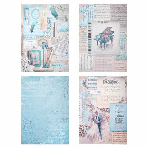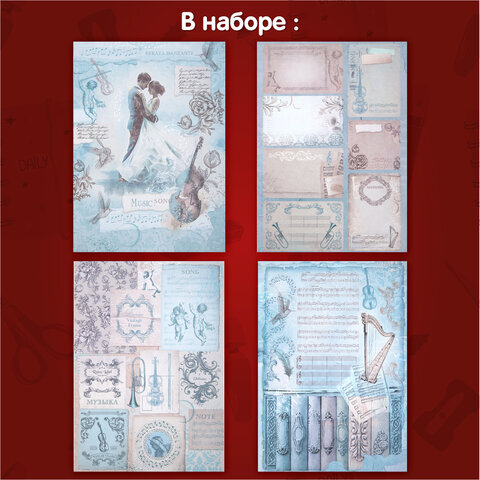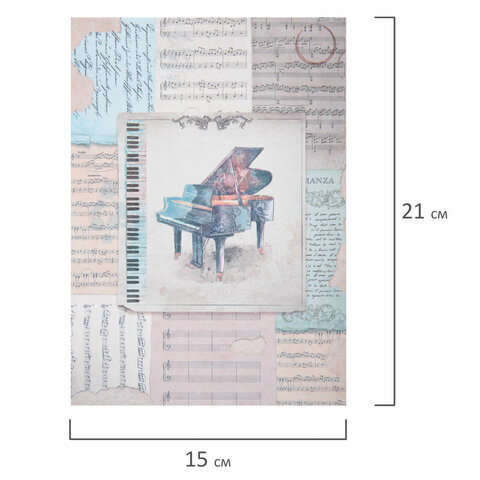 Бумага для скрапбукинга 15х21 см "Нотная Гамма", двусторонняя, 12 листов, 240 г/м2, ОСТРОВ СОКРОВИЩ, 665445