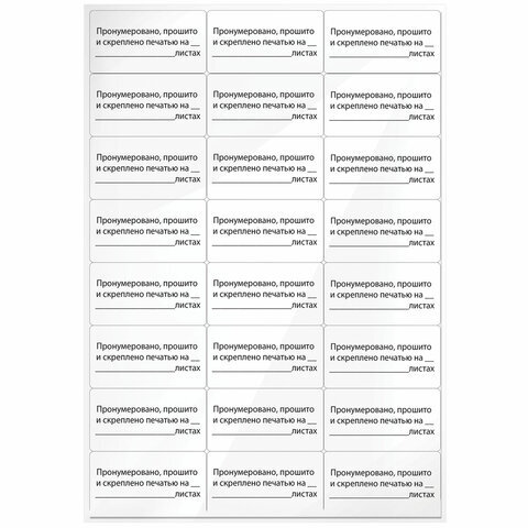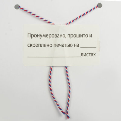 | Надпись "Пронумеровано, прошито и скреплено на______листах" | да |