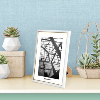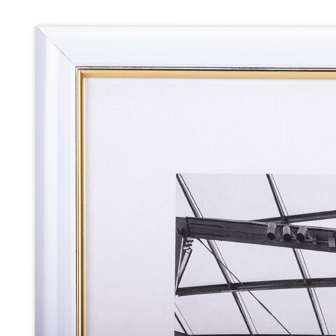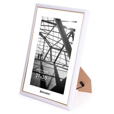 Рамка 21х30 см небьющаяся, багет 14,6 мм, пластик, BRAUBERG "Original Line", белая/золото, 391236