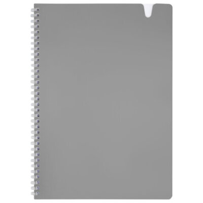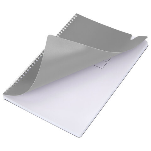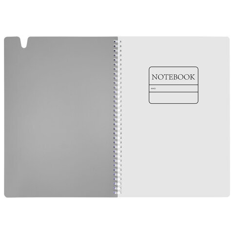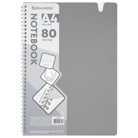 Тетрадь обложка пластик, А4 80 л., гребень мягкий, вырубка для ручки, клетка, BRAUBERG, серый, 405372