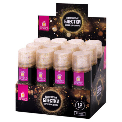 Блёстки для декора в спрее ЗОЛОТИСТЫЕ, 175 мл, ЗОЛОТАЯ СКАЗКА, 592283