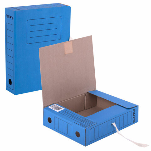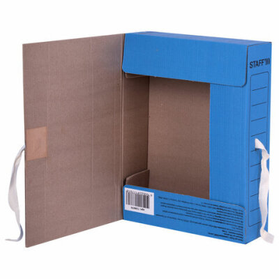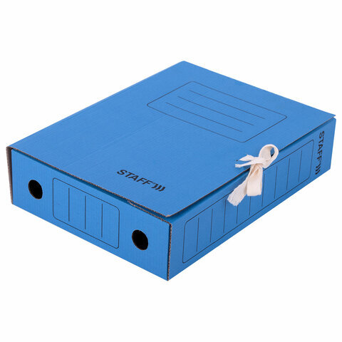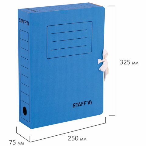 Папка архивная с завязками А4 (325х250 мм), 75 мм, до 700 листов, микрогофрокартон, СИНЯЯ, STAFF, 128870