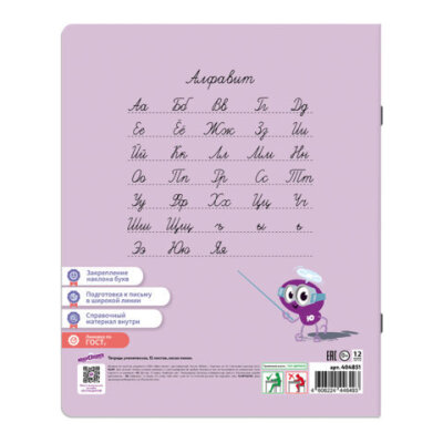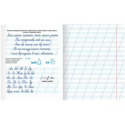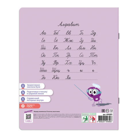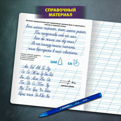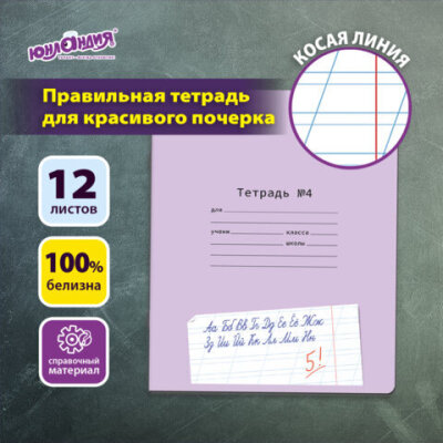 Тетрадь ПРОПИСЬ № 4 12 л. косая линия, со справочным материалом, обложка картон, ЮНЛАНДИЯ, 404851