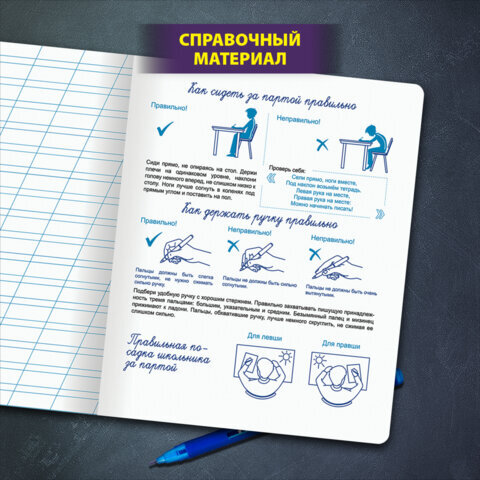 • Школьная тетрадь ЮНЛАНДИЯ с однотонным оформлением обложки идеально подходит для письма шариковыми, гелевыми и капиллярными ручками.