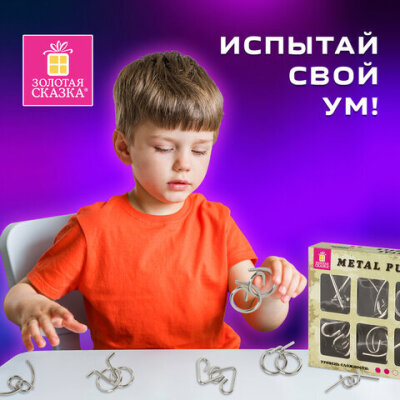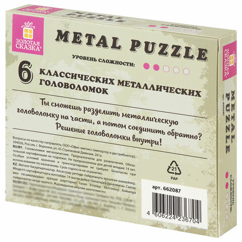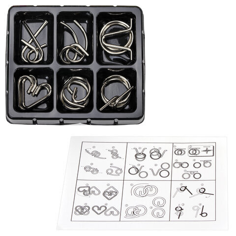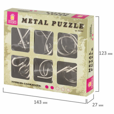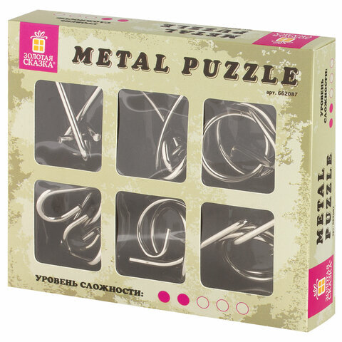 Головоломки металлические ЗОЛОТАЯ СКАЗКА (уровень сложности "НОВИЧОК"), набор 6 штук, 662087