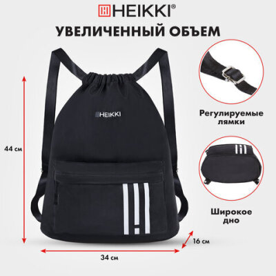 Рюкзак спортивный мешок HEIKKI CASUAL (ХЕЙКИ) с дополнительным карманом, 44х34 см, "Strips", 273458