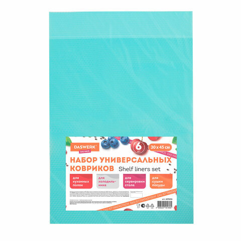Коврики универсальные 6 шт., 30х45 см, для холодильника, полок, сервировки, бирюзовый, DASWERK (ДАСВЕРК), 609606