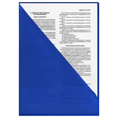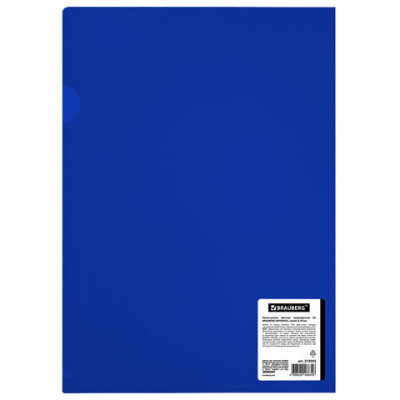 Папка-уголок жесткая, непрозрачная (тонированная), А4, BRAUBERG UNIVERSAL, синяя, 0,18 мм, 273055