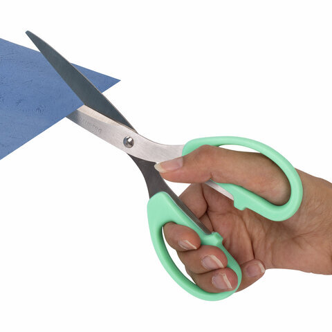 Набор универсальных ножниц BRAUBERG. Эти ножницы идеально подходят для резки бумаги, картона и других материалов, что делает их незаменимыми как в офисе, так и дома.
