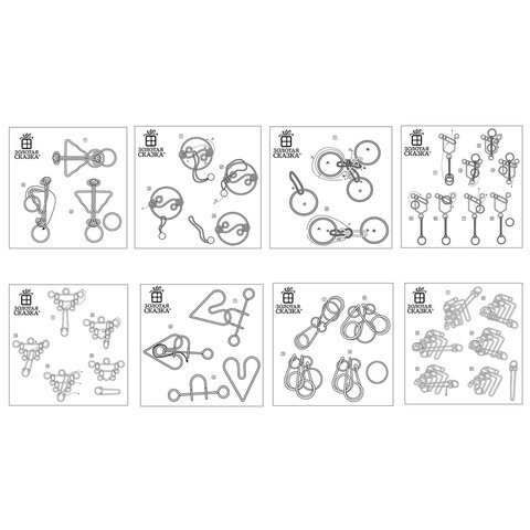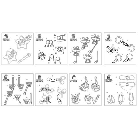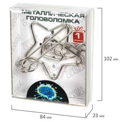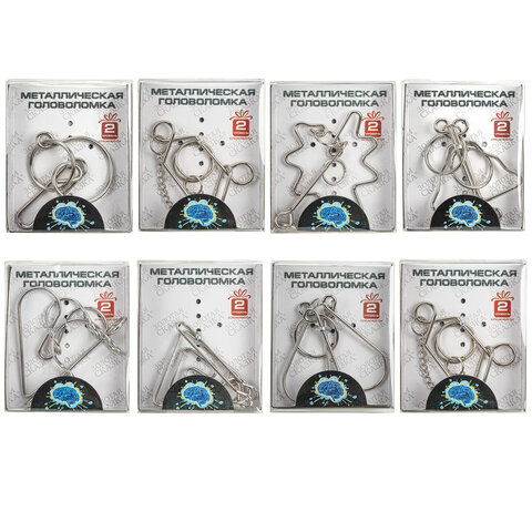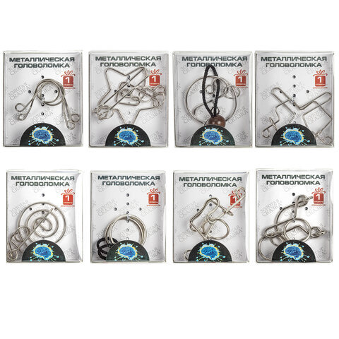 Головоломка металлическая большая ЗОЛОТАЯ СКАЗКА, 24 вида, в дисплее, разные уровни сложности, 664924
