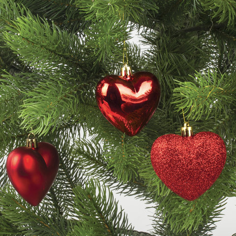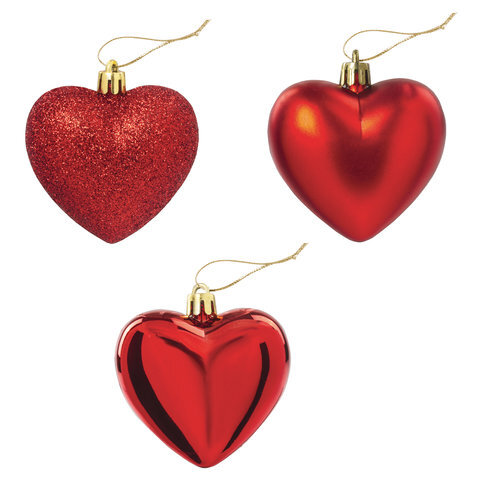 Украшение ёлочное "Сердца" 3 шт., 7 см, пластик, красные, ЗОЛОТАЯ СКАЗКА, 590900