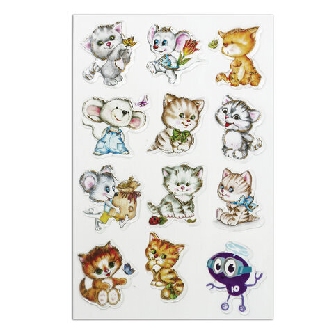 Наклейки гелевые "Кошки-мышки", многоразовые, с тиснением фольгой, 10х15 см, ЮНЛАНДИЯ, 661815