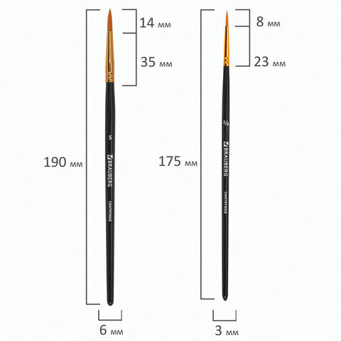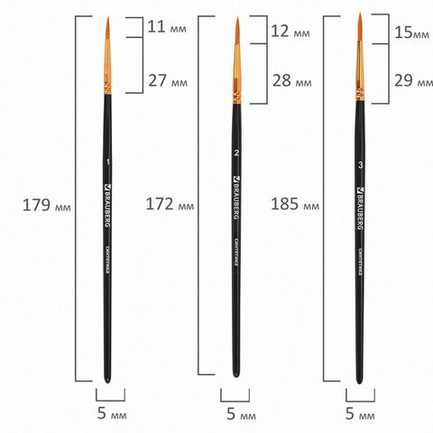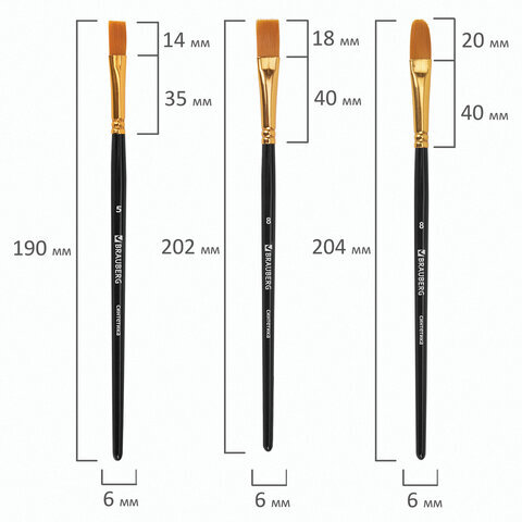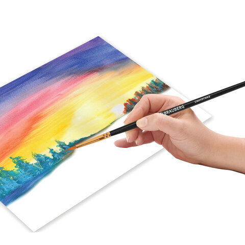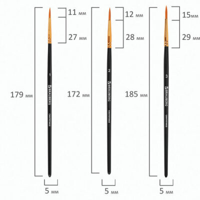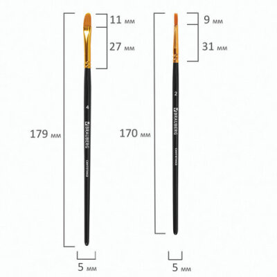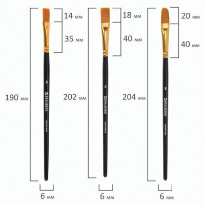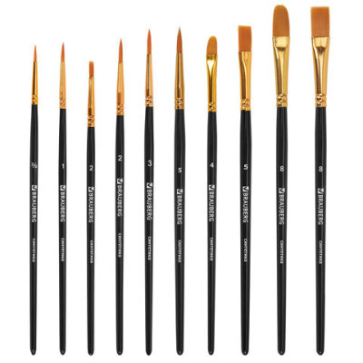 Кисти синтетика BRAUBERG, НАБОР 10 шт., черные (Круглые; Овальные; Плоские; Лайнеры), 201028