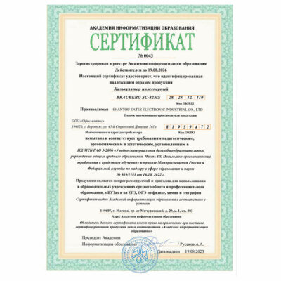 | Сертифицирован для ЕГЭ | да |