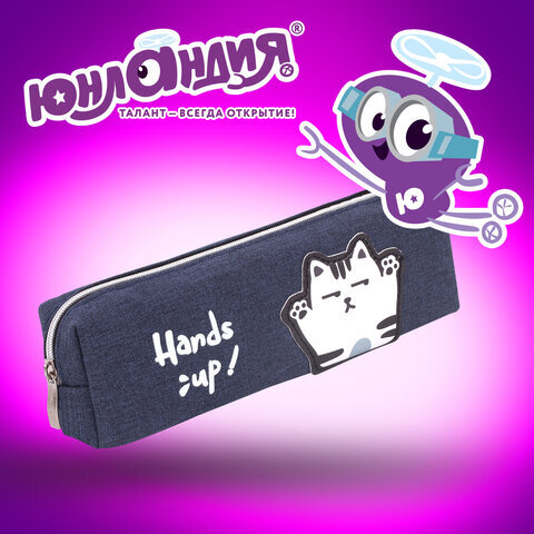 Пенал ЮНЛАНДИЯ, 1 отделение, полиэстер, "Cat", синий, 19х4х6 см, 270278