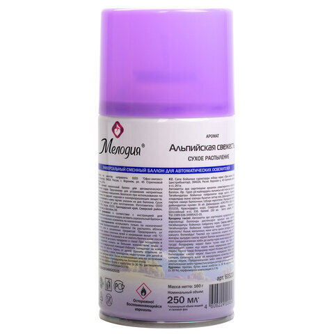 Сменный баллон 250 мл МЕЛОДИЯ "Альпийская свежесть", для автоматических освежителей, универсальный, 605228