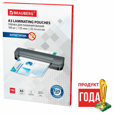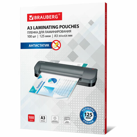 Пленки-заготовки для ламинирования АНТИСТАТИК БОЛЬШОГО ФОРМАТА А3, КОМПЛЕКТ 100 шт., 125 мкм, BRAUBERG, 531797