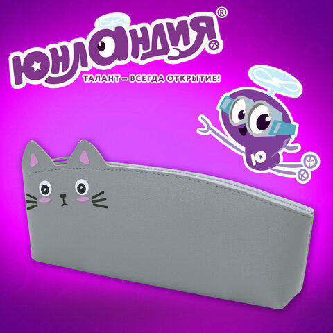 Пенал ЮНЛАНДИЯ ЮНИОР, 1 отделение, искусственная кожа, "Gray kitty", 20х9х7 см, 273819