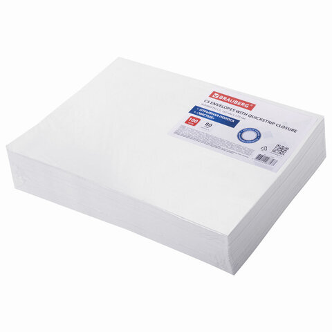 Конверты С5 (162х229 мм), отрывная лента, внутренняя запечатка, 80 г/м2, КОМПЛЕКТ 100 шт., BRAUBERG, 112187