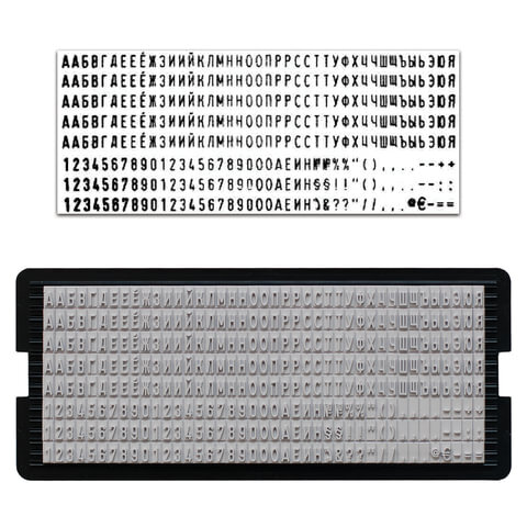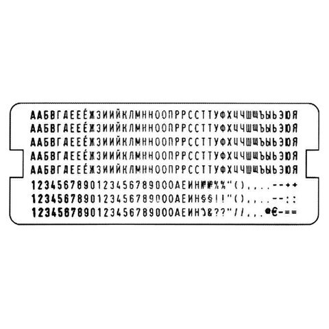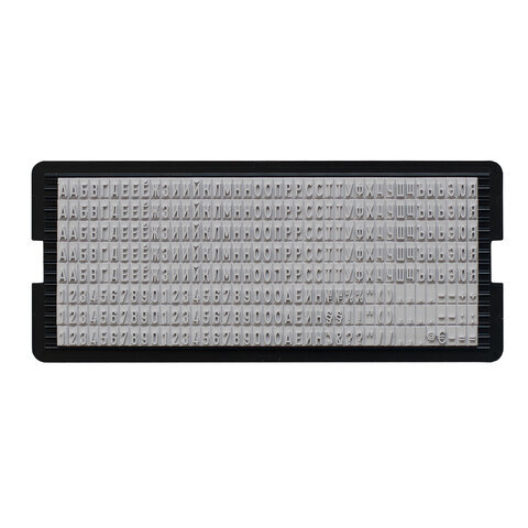 Касса русских букв и цифр для самонаборных печатей, штампов, датеров TRODAT. В кассе 328 символов, высота букв - 3 мм. Двухножечная система крепления.