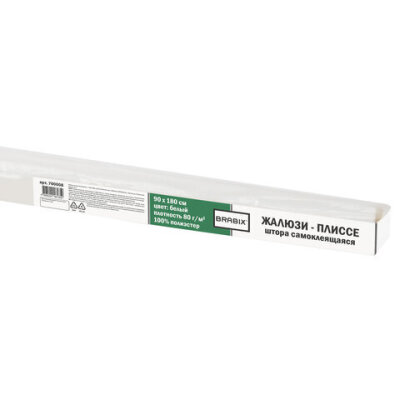 Жалюзи-плиссе, штора тканевая самоклеящаяся BRABIX, 90х180 см, СТАНДАРТ+, 80 г/м2, цвет белый, 1 шт., 700008