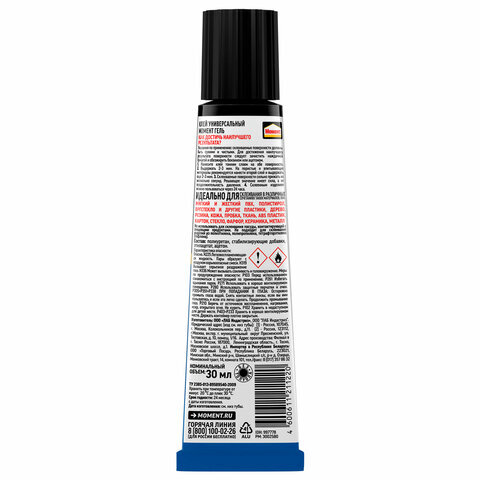 • ГЕЛЬ Момент подходит для склеивания как мягкого, так и жесткого ПВХ, полистирола, оргстекла и других видов пластика, а также дерева, резины, кожи, пробки, ткани, поролона, бумаги, картона, стекла, фарфора, керамики, вспененных материалов, металлов и др.