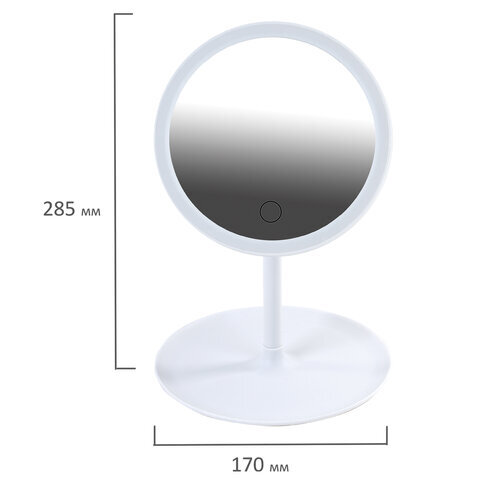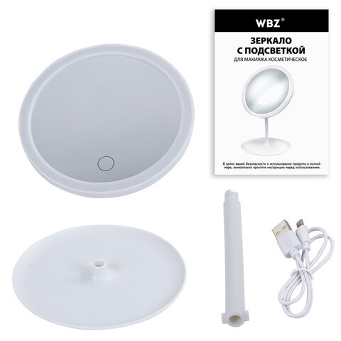 Зеркало настольное с LED-подсветкой для макияжа, диаметр 17 см, 3 режима свечения, аккумулятор 800 mAh, цвет белый, WBZ (ВБЗ), 609332