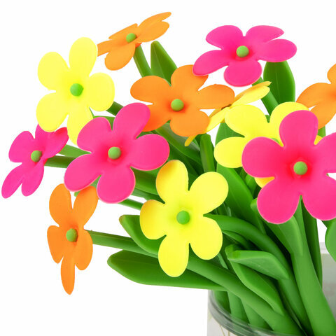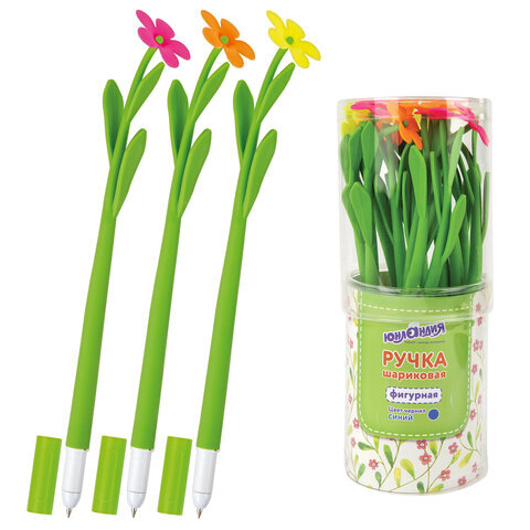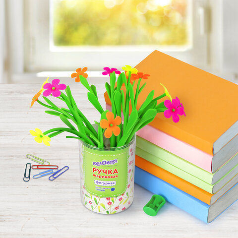 Ручка фигурная шариковая ЮНЛАНДИЯ "Цветочек", мягкий силиконовый корпус, ассорти, СИНЯЯ, пишущий узел 0,7 мм, 143779