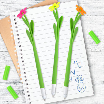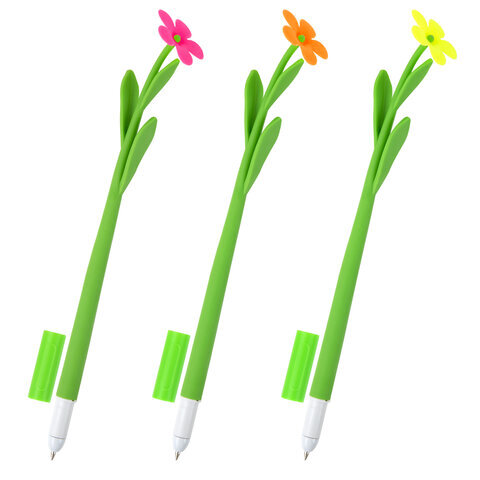Шариковая ручка ЮНЛАНДИЯ "Цветочек" с мягким силиконовым корпусом.