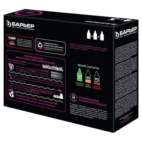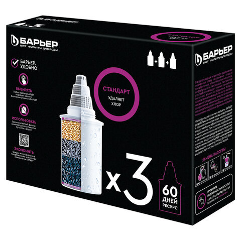 Сменная кассета БАРЬЕР "4 Стандарт", универсальная, для всех типов фильтров БАРЬЕР, комплект 3 шт., К043Р20