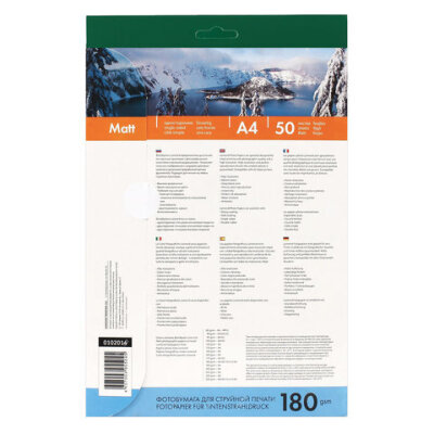 Фотобумага матовая, А4, 180 г/м2, односторонняя, 50 листов, LOMOND, 0102014