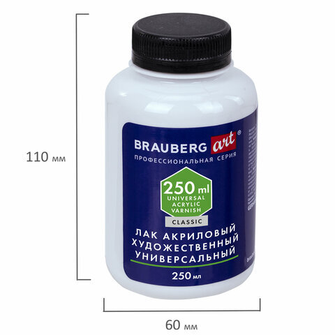 Лак акриловый художественный универсальный, в бутылке, 250 мл, BRAUBERG ART CLASSIC, 192351