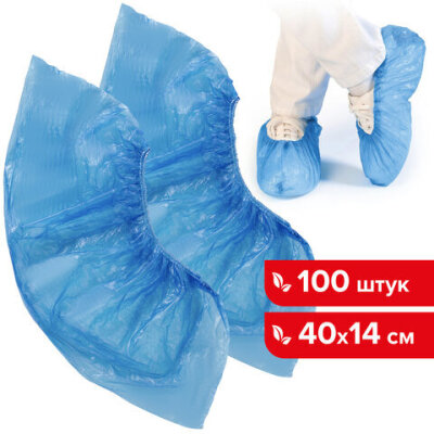 Бахилы КОМПЛЕКТ 100 шт. (50 пар) в упаковке, СТАНДАРТ, размер 40х14 см, 2,8 г, ПНД, LAIMA, 104979